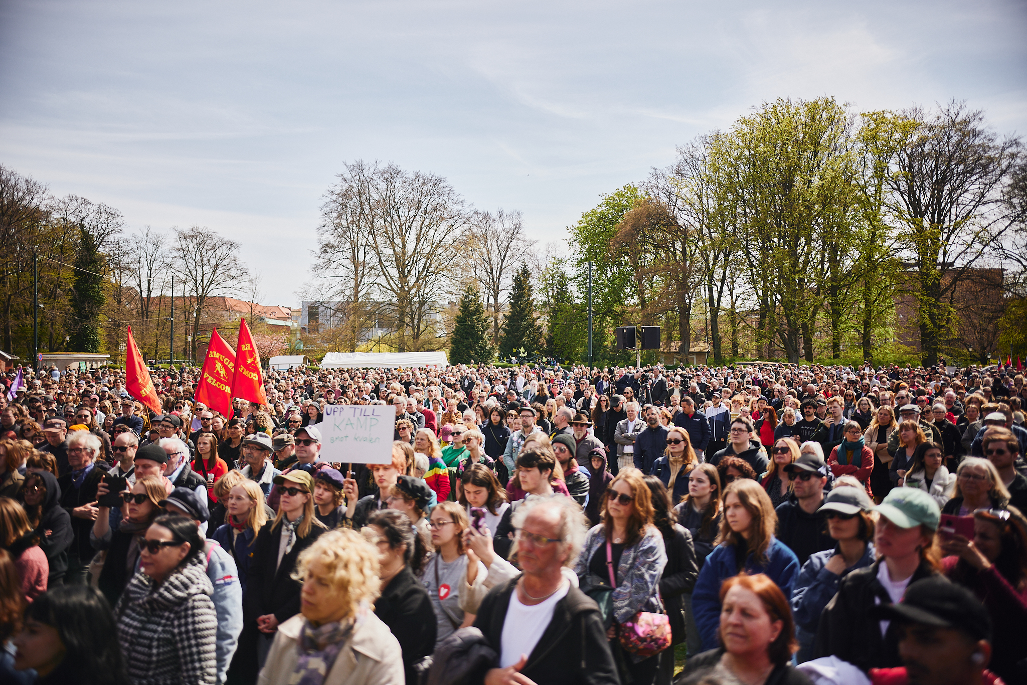 Här och nu drar vi en gräns mot rasisterna i kostym, oavsett om de finns i Sverige eller i EU. Här och nu skickar vi en tydlig signal till våra barn och framtida generationer – vi hör er och vi tar ansvar! För jordens överlevnad, för folkrätten, för frihet och demokrati. För jämställdhet, jämlikhet och solidaritet.
