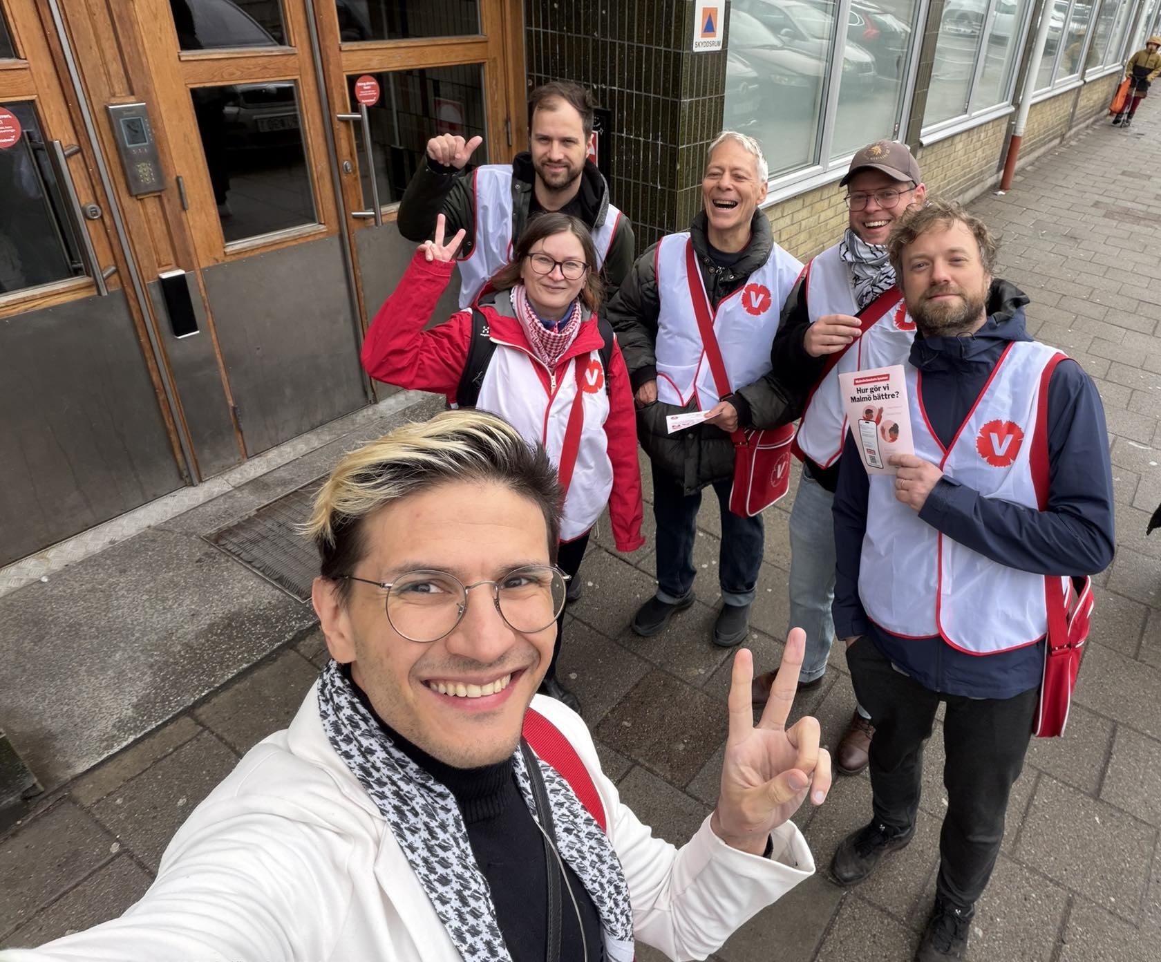 Vi ska knacka tusentals dörrar i valrörelsen. Här kring Möllevångstorget, mars 2026.