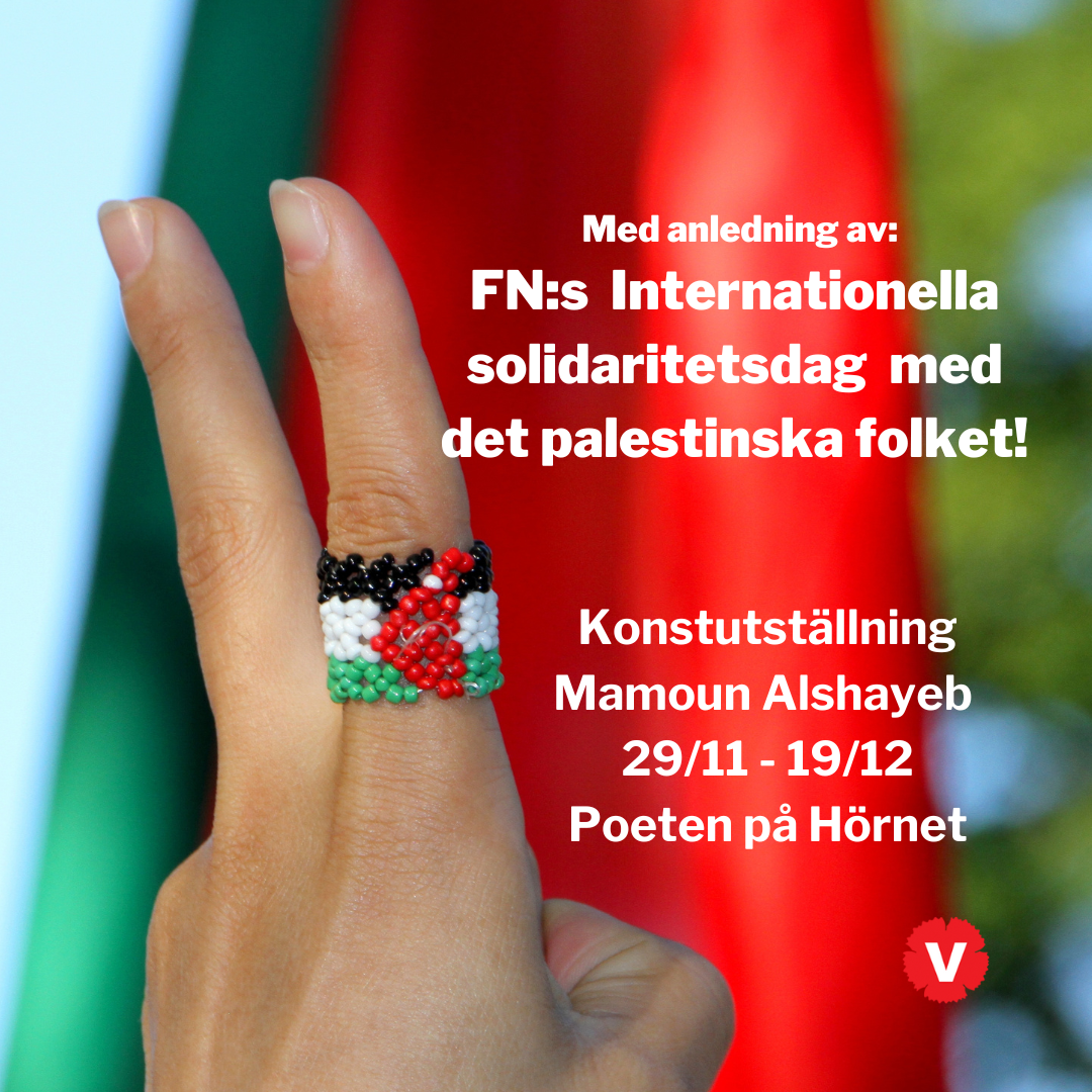 Konstutställning Utställningen handlar om solidaritet med den palestinska folket och står uppe 29/11 – 19/12. Invigningen av utställningen är inne i lokalen. Resterande period hänger tavlorna vid fönstret. Invigningen av utställningen: 29 november kl 19:30 Datum för utställning: 29 nov – 19 dec Plats: Poeten på hörnet, Södra förstadsgatan 65b Malmö Konstnär: Mamoun Alshayeb från […]