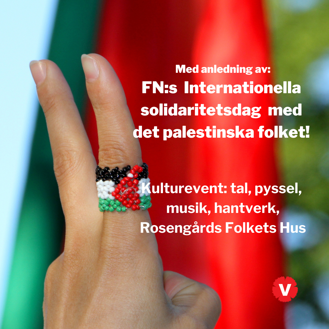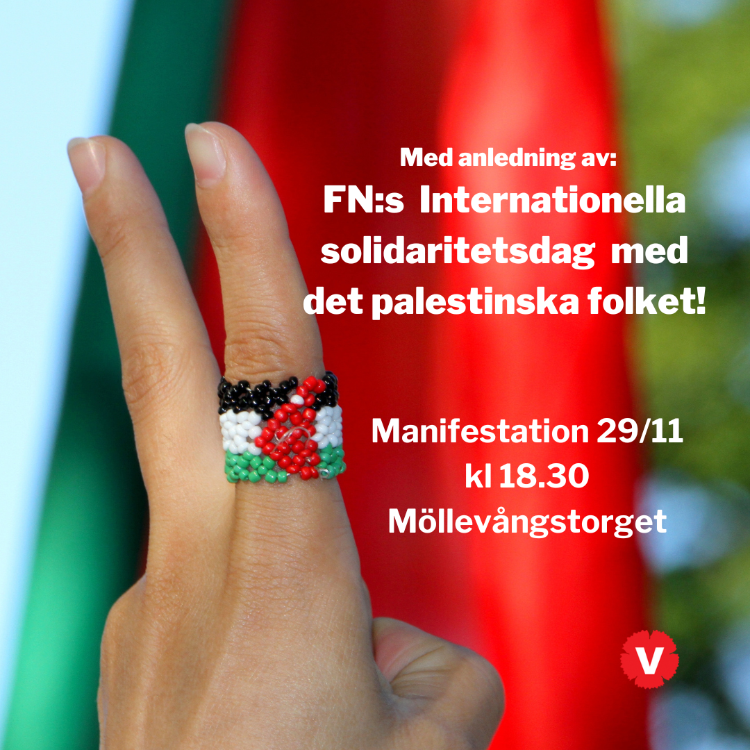 FN:s internationella solidaritetsdag med det palestinska folket Dagen uppmärksammas över hela världen för att belysa att ett fritt och självständigt Palestina ännu inte uppnåtts. Israels övergrepp mot de mänskliga rättigheterna, folkrätten och det palestinska folket inte bara fortsätter, utan blir dessutom allt grövre. Arabiska vänstern och internationella utskottet i vänsterpartiet Malmö i samarbete med […]