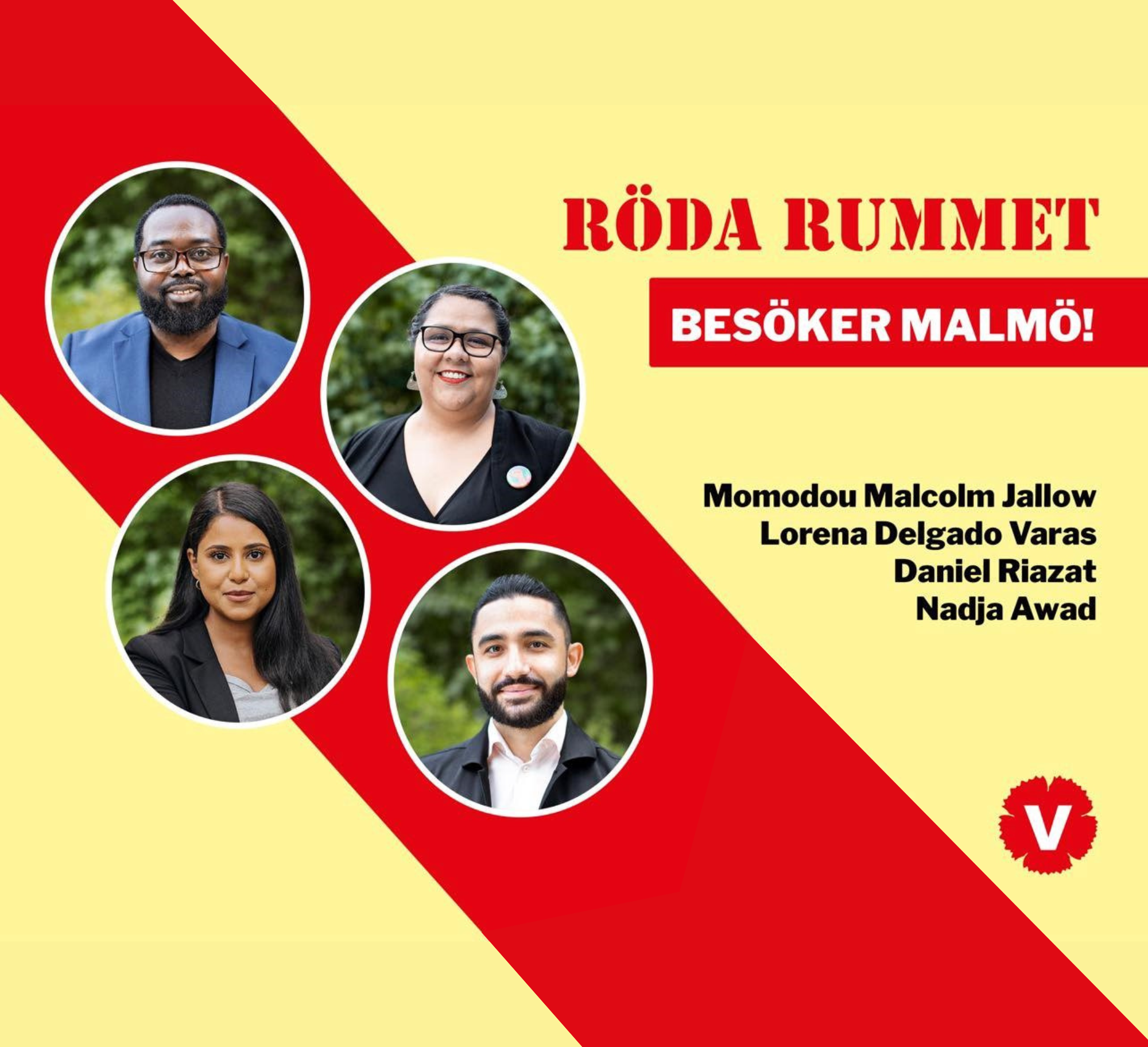 Malmö får besök av Röda rummet. De fyra antirasistiska riksdagsledamöterna (Malcolm Momodou Jallow, Lorena Delgado, Daniel Riazad och Nadja Awad) kommer under dagen att besöka olika verksamheter och föreningar i Malmö och avsluta dagen med ett samtal kring Tidöavtalet. Vad innebär Tidöavtalet? Vilka antirasistiska strategier och verktyg som måste utvecklas och tas fram för att […] |