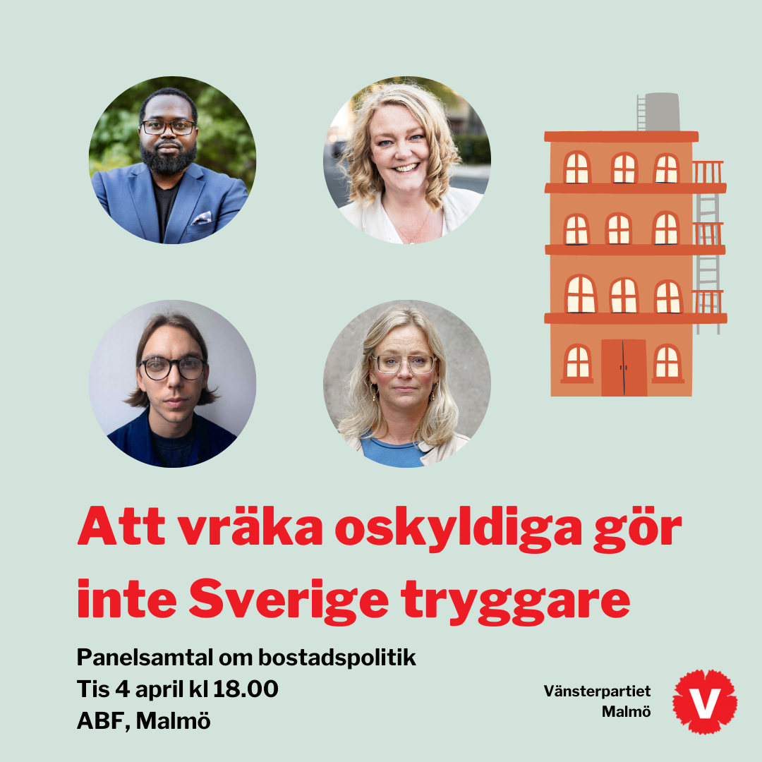 Ett samtal om bostadspolitik Regeringen utreder en ny lagstiftning som syftar till att kollektivt bestraffa landets 3 miljoner hyresgäster. Förutom att utredningen har ett i grunden rättsvidrigt perspektiv så tycks den röda tråden vara att trampa på alla människor som redan idag har det tuffast i samhället: fler kvinnor som misshandlas ska vräkas från sina […]